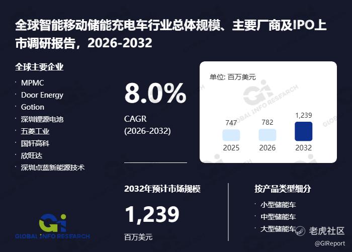根据本项目团队最新调研,预计2032年全球智能移动储能充电车产值达到1239百万美元,2026-2032年期间年复合增长率CAGR为8.0%。