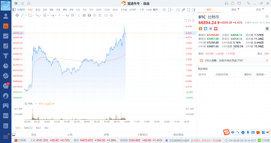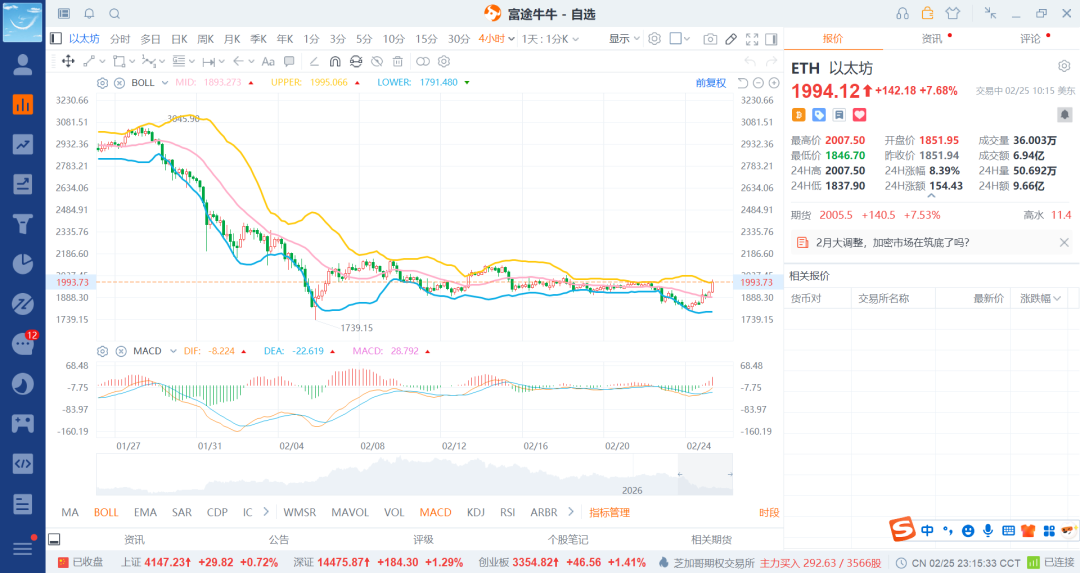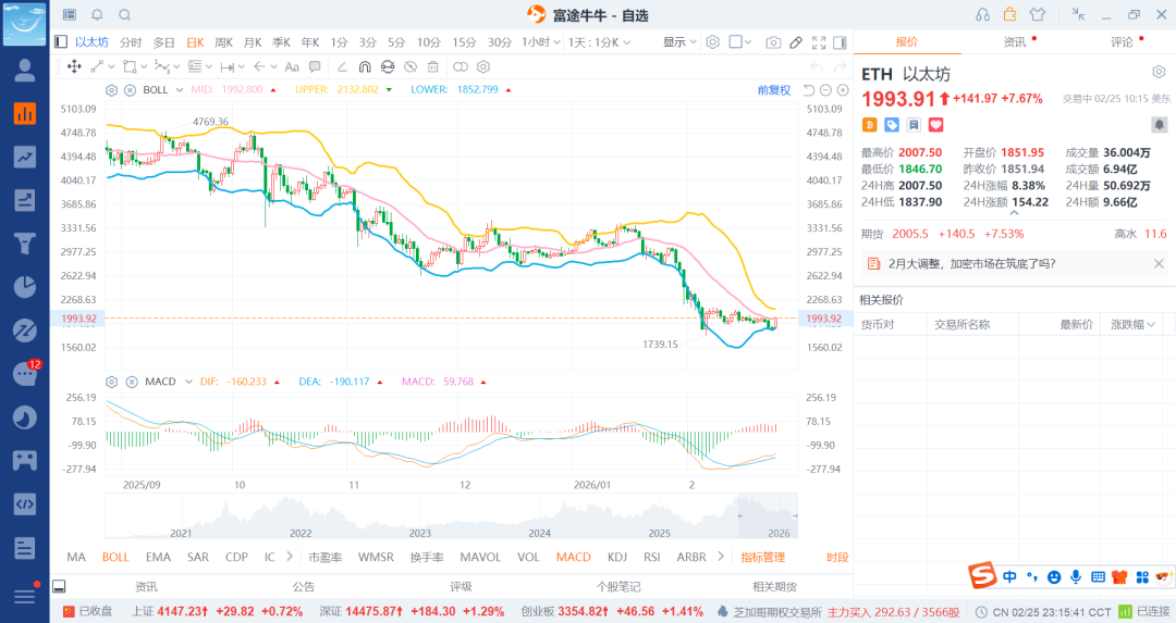 26-2-15 数字货币之比特币和以太币继续走高t出一笔