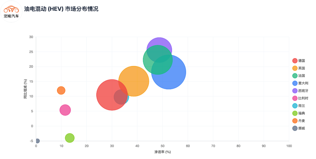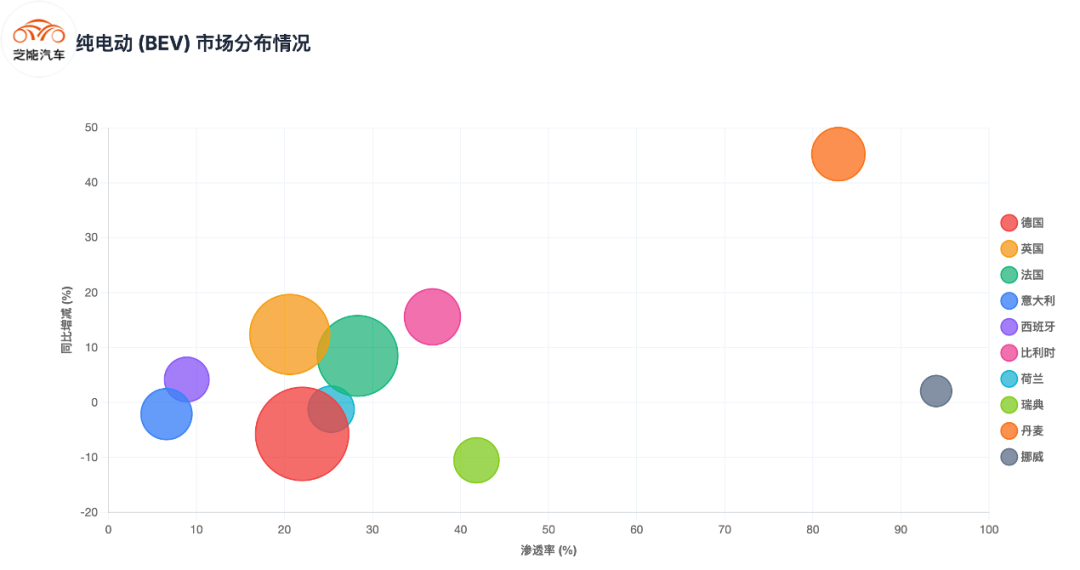 欧洲纯电动正在形成“德国+法国+英国”叠加北欧高渗透率。