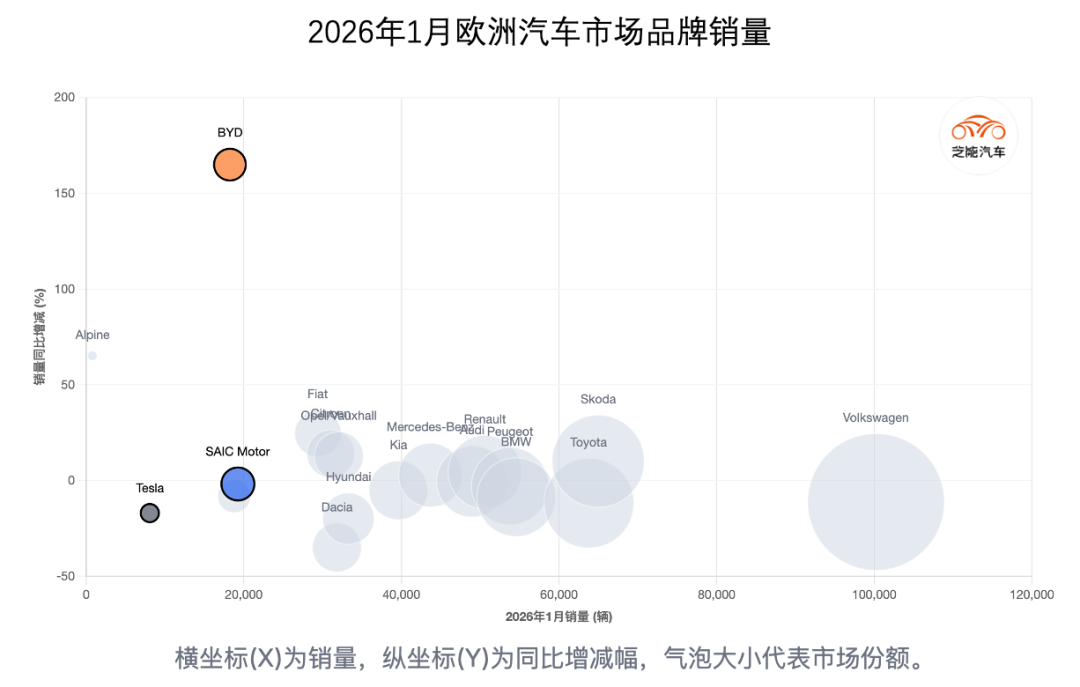 欧洲2026年1月汽车销量解析,上汽、比亚迪超过特斯拉