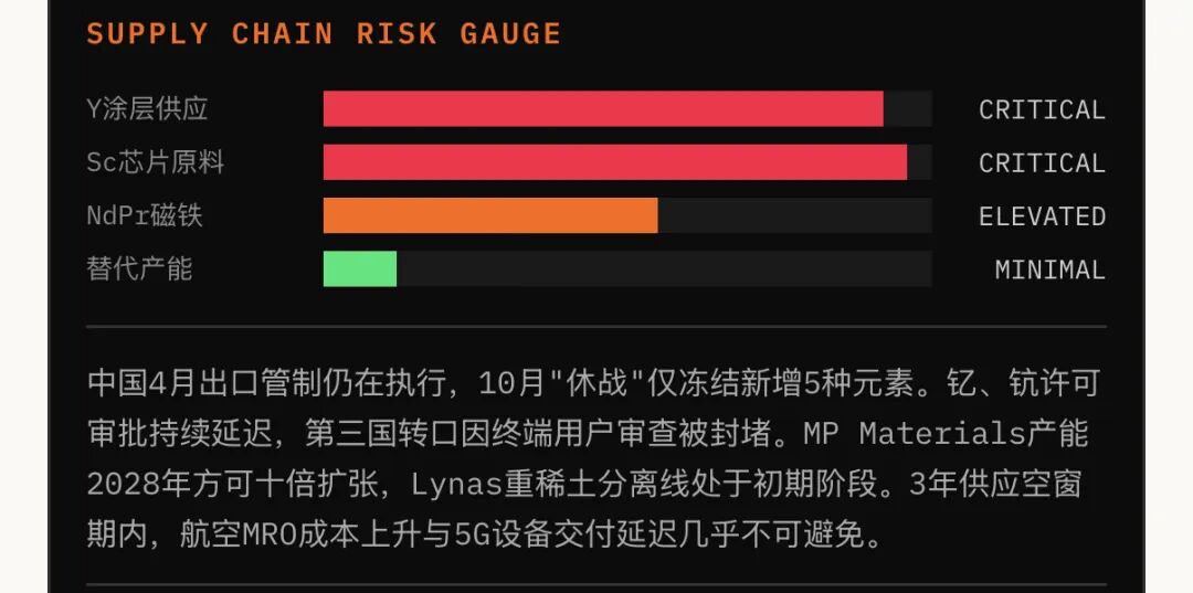 核心瓶颈集中在钇(Yttrium)和钪(Scandium)——两种用量虽小但不可替代的战略元素。
