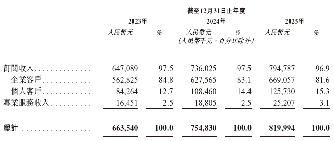 群核科技的收入来自企业及个人客户订阅软件产品及解决方案、向企业客户提供专业服务(模型服务、技术配置服务及客户培训)。