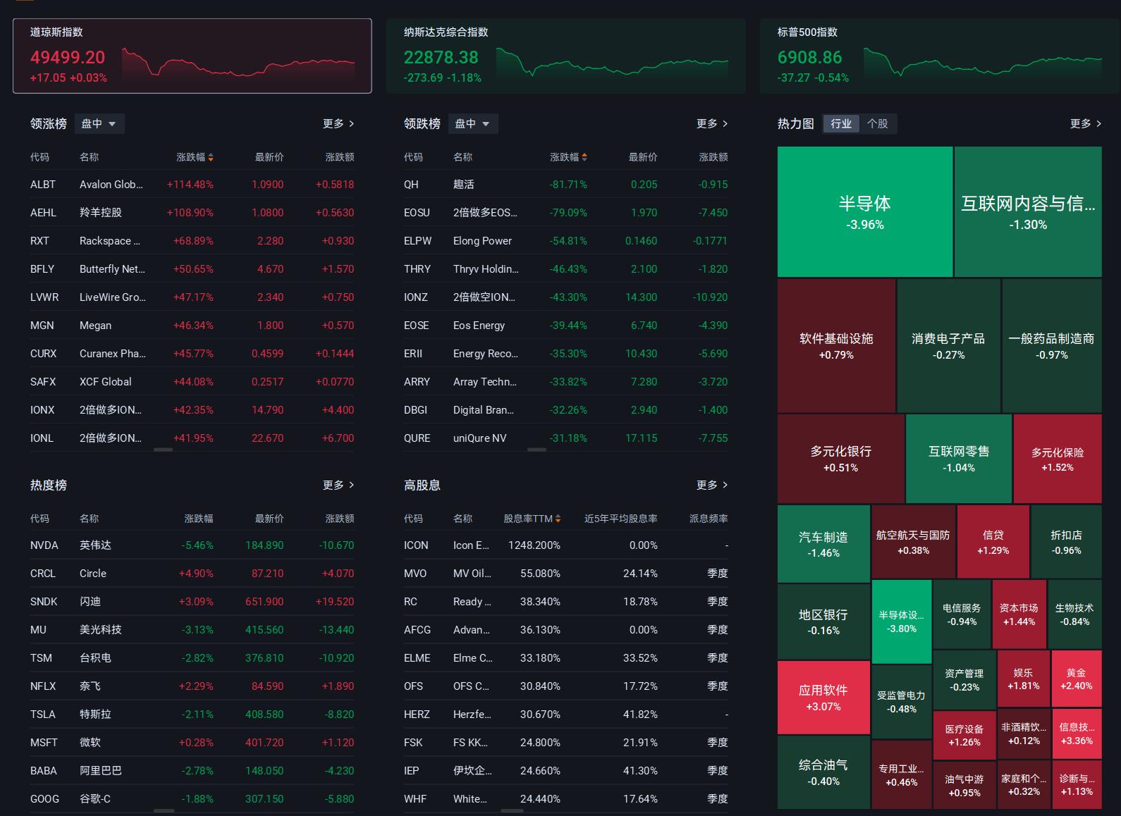 分析:左侧领跌榜充满了杠杆ETF和小盘妖股。这表明昨日市场对于投机性筹码的清洗非常残酷。特别是杠杆ETF的暴跌,往往伴随着标的资产的大幅反向波动,提示散户不要盲目追高杠杆产品。