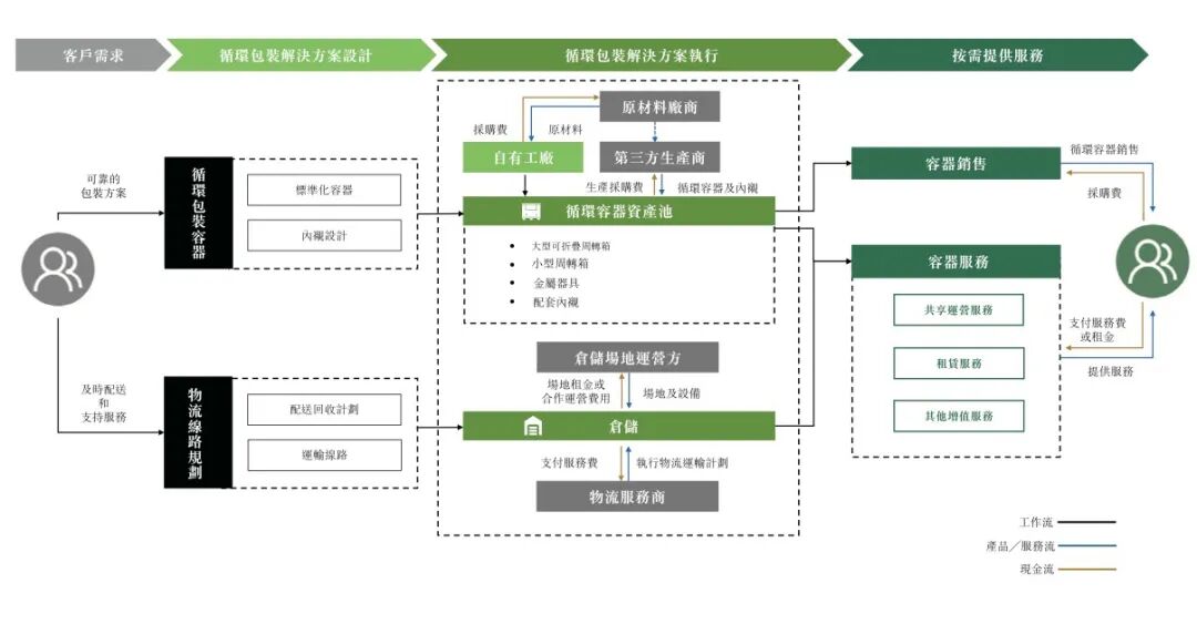 公司主要提供共享运营,这是一种共享模式,根据这一模式,公司为客户管理托盘、板条箱或容器等循环包装,代表客户处理循环包装的储存以及配送及退货(主要通过分包的第三方物流服务提供商进行)、清洁和维护。除了共享运营,公司还为倾向于自主管理循环包装的客户提供租赁服务、提供仓储管理和客户自有容器管理等增值服务、同时也将容器出售予可独立管理容器的客户。