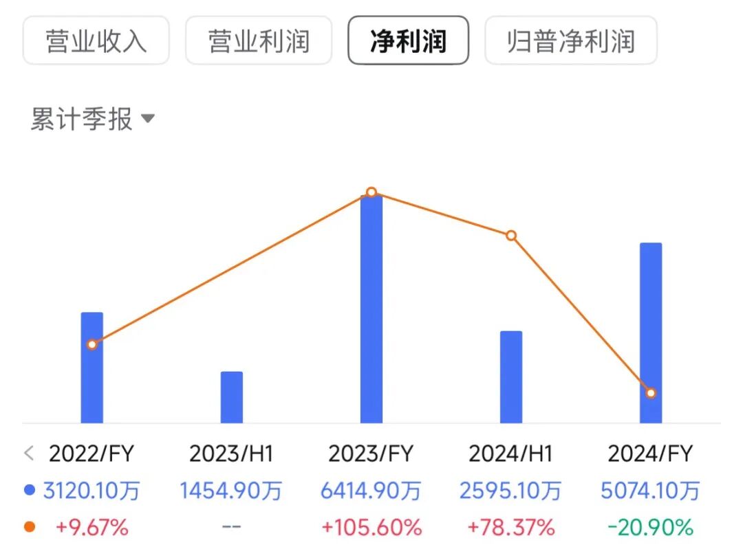 净利分别约为人民币0.31亿、0.64亿、0.51亿、0.31亿、0.27亿,2025年前8月同比-12.49%;