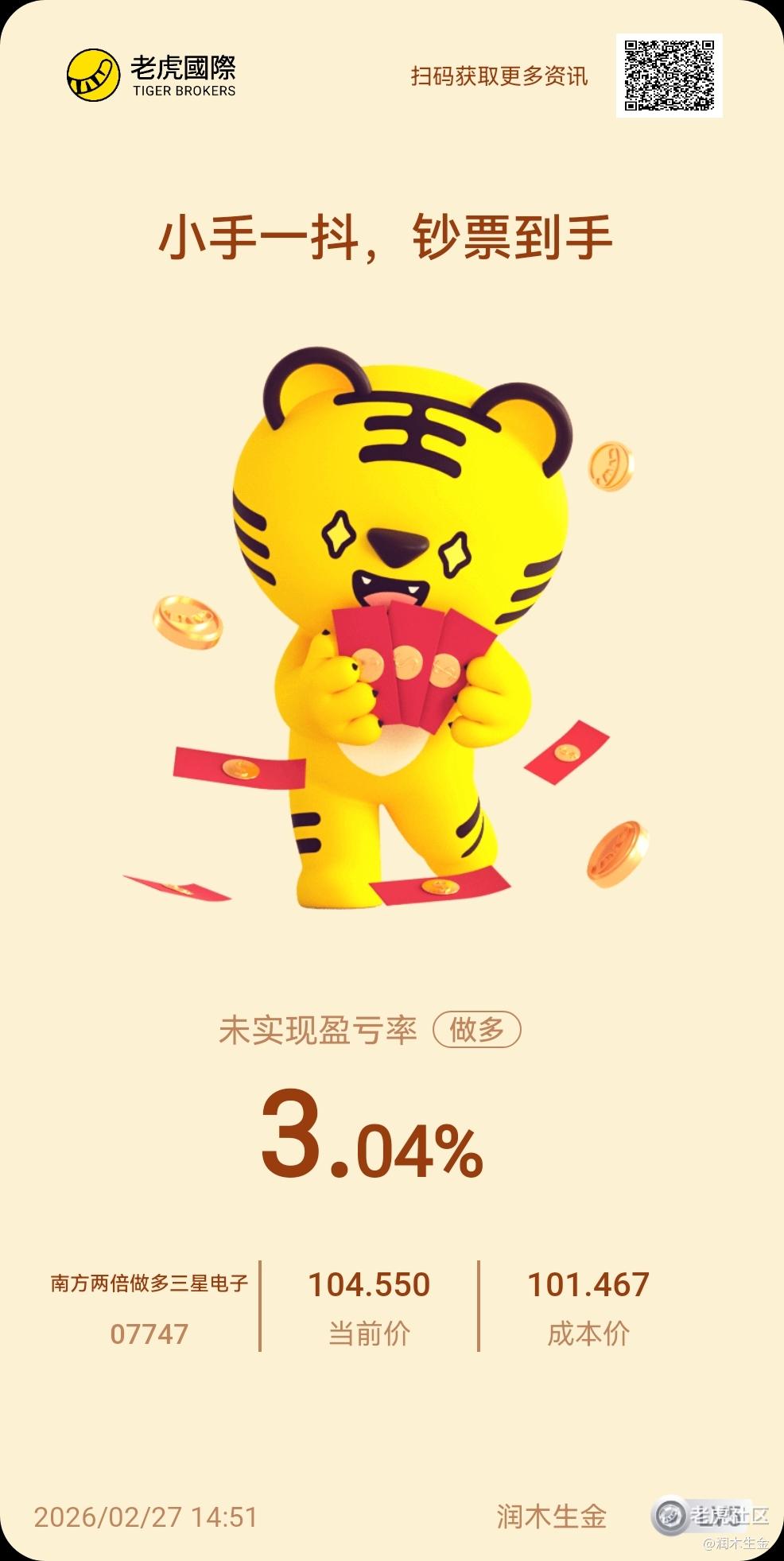 $南方两倍做多三星电子(07747)$ $南方两倍做多海力士(07709)$ 根据自己的节奏来,定投的思路,逢低我就加一点