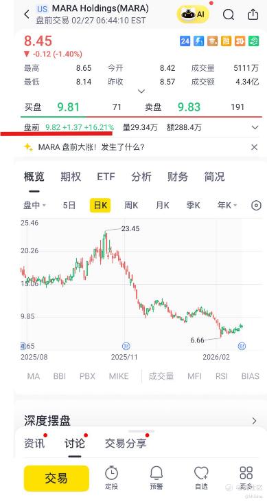 挖矿赚不到钱,改成讲故事,就能涨这么多,连财报烂成那个样子,照样涨,这是怎么啦?看到 $MARA Holdings(MARA)$ 这个盘前大涨的幅度,真的有点不敢相信。[惊讶]