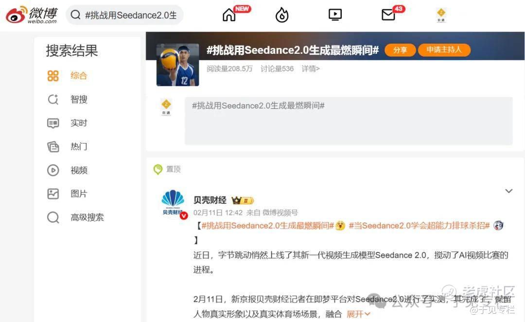 一时之间,各种关于Seedance 2.0等AI工具的评测体验、实战教程干货,也成为了微博平台的“香饽饽”,点赞、评论、转发数据居高不下。