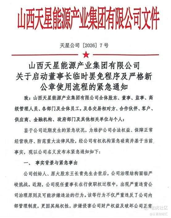 2026年伊始,一场由家族内斗引发的治理风暴,席卷了山西知名企业山西天星能源产业集团有限公司(以下简称“天星集团”)。