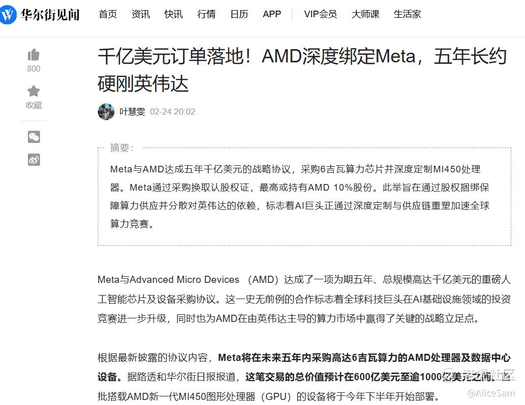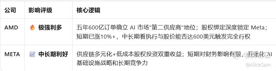 对Meta是中长期利好,强化AI服务器采购能力,降低成本与供应风险,提升自身 AI 平台(如 Llama)的算力支撑,成为潜在10% AMD 股东具有资本回报潜力,对META的股价的短期影响有限,但中长期AI竞争力增强,也算是一个偏正面的消息吧。