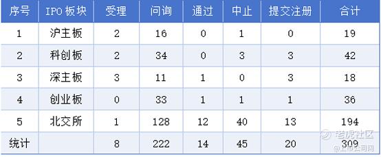 截至3月1日,IPO排队企业309家,其中沪主板排队企业19家,科创板排队企业42家,深主板排队企业18家,创业板排队企业36家,北交所排队企业194家。