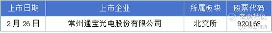 2月24日至3月1日期间,常州通宝光电股份有限公司挂牌上市。