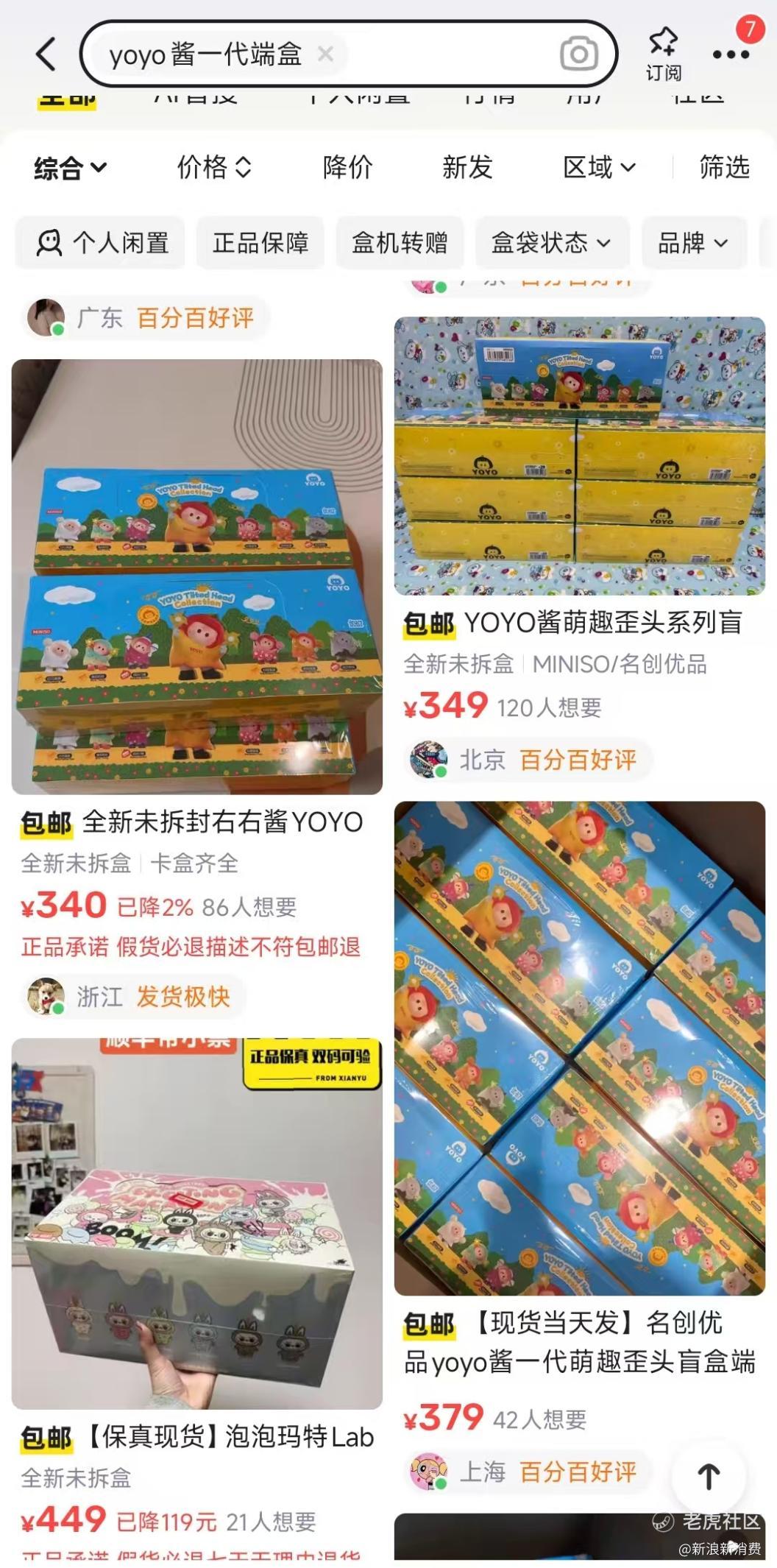 春晚合作进一步引爆了YOYO粉丝的消费热情。据新浪财经援引中外玩具网监测数据,2月以来,YOYO一代盲盒出现明显溢价,原价单只29元、端盒290元,2月28日端盒近7天成交均价约312元,实际成交价在310—370元区间内;在闲鱼搜索“YOYO酱一代端盒”等关键词,相关商品价格也普遍在300-378元之间。