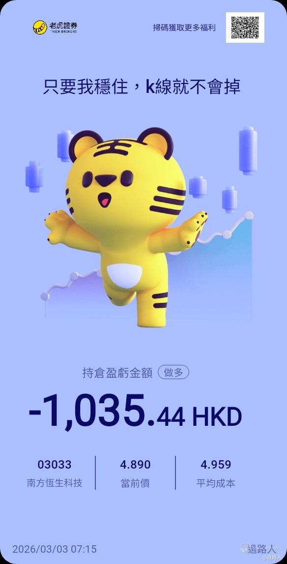 秋官话斋:打仗呀[捂脸] 。打仗点会升呀。我仲以为打到黎香港添。咁点解港股又无啦啦又暴跌[看跌] 570点呀。波叔话。香港系安全港。会有资金流入。我真系信架。所以我琴日加注买左3033等收钱。