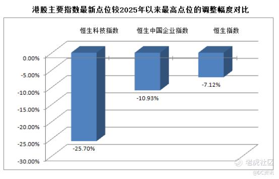 从相关指数最新点位较2025年以来最高点位的调整幅度来看,恒生指数调整幅度相对较小,为7.12%,恒生中国企业指数与恒生科技指数的调整幅度则分别为10.93%和25.70%,其中恒生科技指数从调整幅度上看已步入“技术性熊市”。