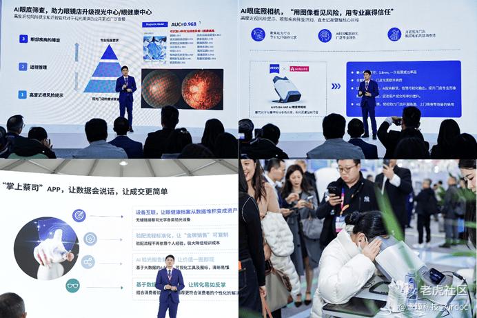 会后,蔡司光学团队莅临鹰瞳Airdoc人工智能PBM近视防控展区,深度交流AI与光生物调节技术在近视防控领域的创新应用。