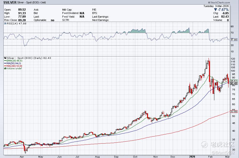周末以来,美以对伊朗的军事行动持续升级,已进入第四天。油轮一度停航,霍尔木兹海峡成为全球市场关注的核心变量。布伦特原油迅速飙升至80美元上方,股市剧烈震荡,尽管避险情绪一度将金银推至高位,但本周二金银却出现了意想不到的剧烈回撤。