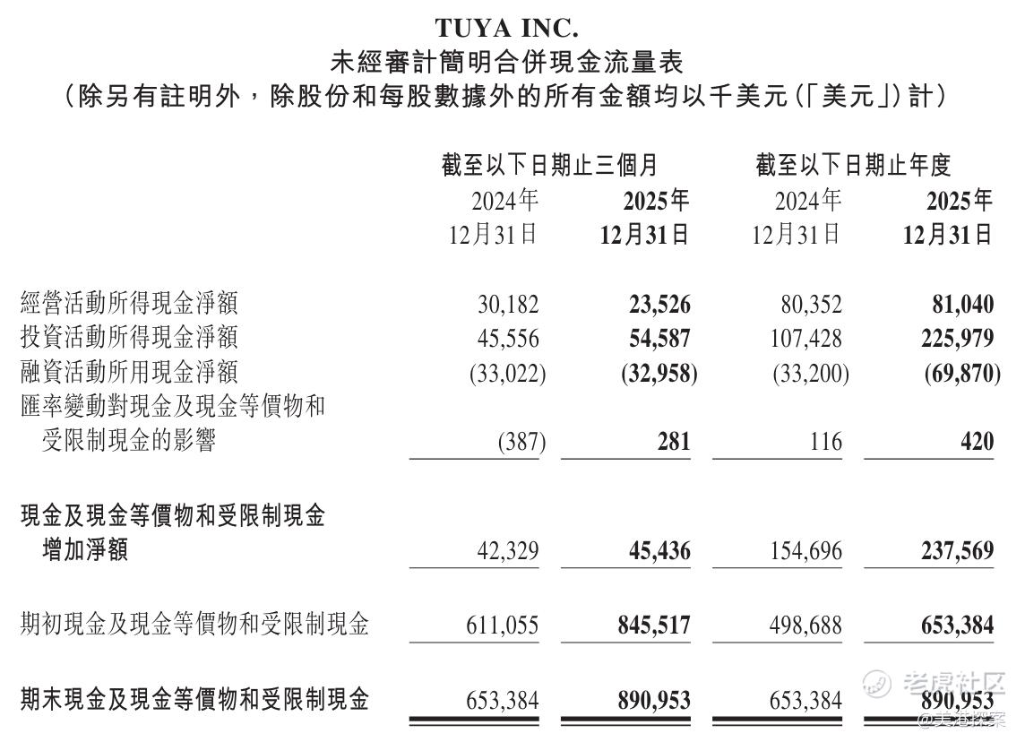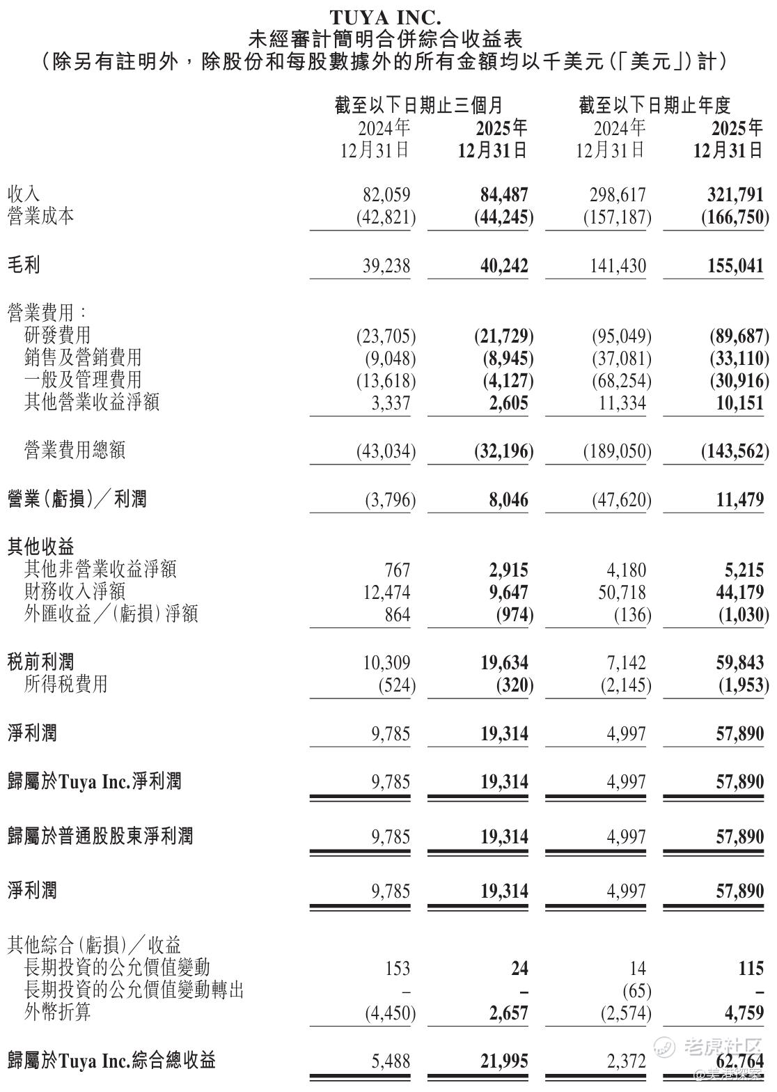 说实话,3.22亿美元营收、同比7.8%的增速,放在AIoT赛道确实不算炸裂。但投资投的是"预期差",当所有人都在担心地缘政治冲击(Q4财报明确提到4月以来关税扰动)时,涂鸦交出的答卷是:Q4运营利润率10%,全年经调整运营利润3370万美元,同比实现转正。