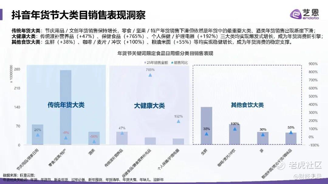 传统零食品类经历线上价格内卷后,需求进一步下滑。据艺恩发布的《2026抖音年货节全景洞察报告》显示,零食坚果山核桃/坚果/炒货首次出现下滑。