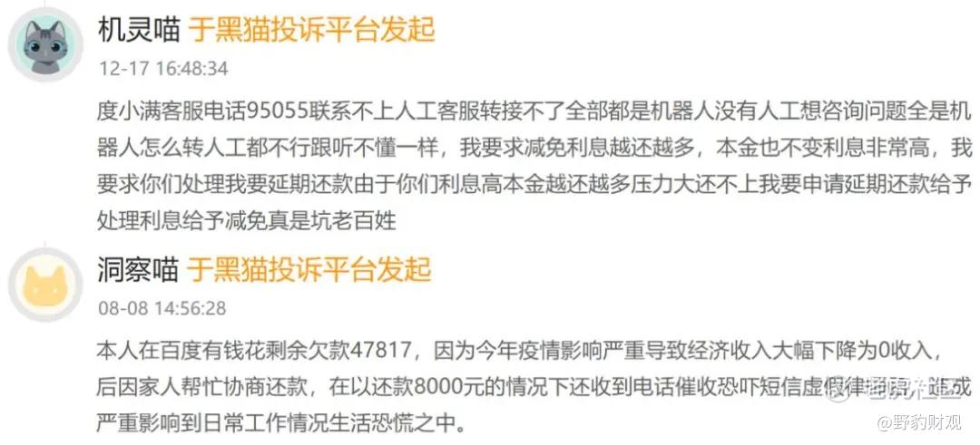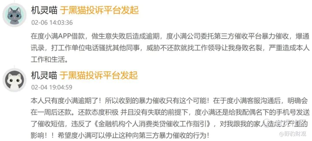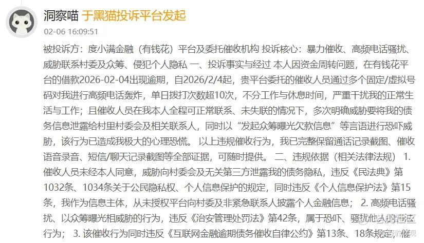 作为背靠百度技术基因、深耕消费金融领域多年的头部平台,度小满长期以来致力于打造“科技+金融”的正规军形象。但令人意外的是,新规落地仅满月,黑猫投诉等平台上多起投诉案例显示其一线业务操作与新规红线要求存在显著差距。