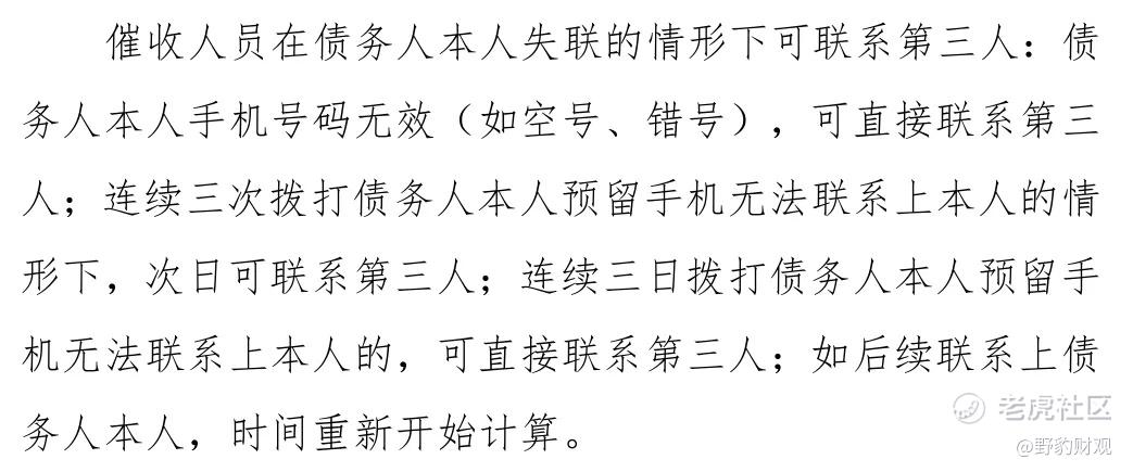 新规明确规定,只有债务人在失联的情况下才可以联系第三人,并且不允许向与债务无关的人泄露欠款信息以及进行骚扰催收。