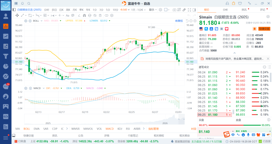 26-3-4 贵金属之白银大跌到最次位置空单减持部分(4)