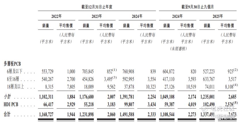 广合科技按产品类别划分的PCB销量及平均售价明细,来源:招股书