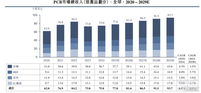 多层PCB和HDI PCB的销售额有望在2029年分别达到436.0亿美元和169.0亿美元,2024年至2029年的年复合增长率分别为3.5%和5.7%。