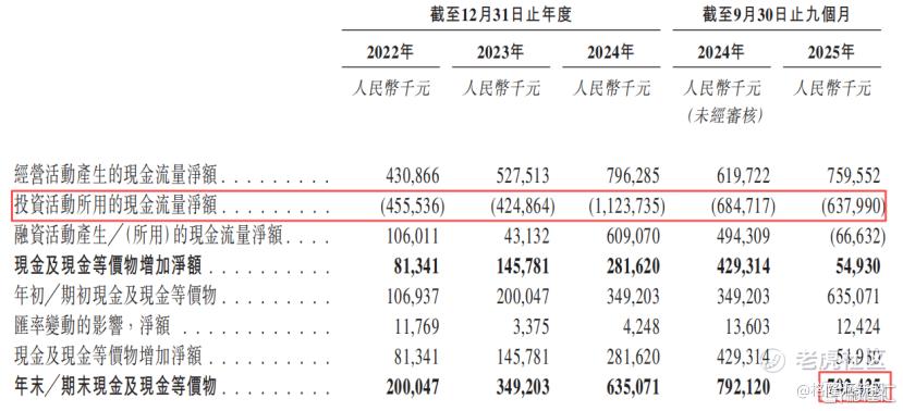 过去几年,广合科技持续录得投资活动现金净流出,报告期内累计约26.42亿元。另外,公司2024年至2025年度累计派息3.1亿元。截至2025年9月底,公司账上现金及现金等价物约7.02亿元。