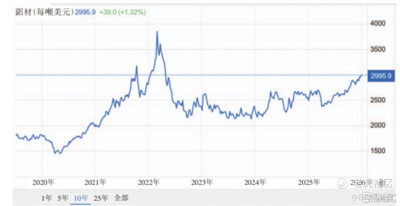 2020年至2025年铝合金板材成本,资料来源于JWA报告,图片来源于招股书