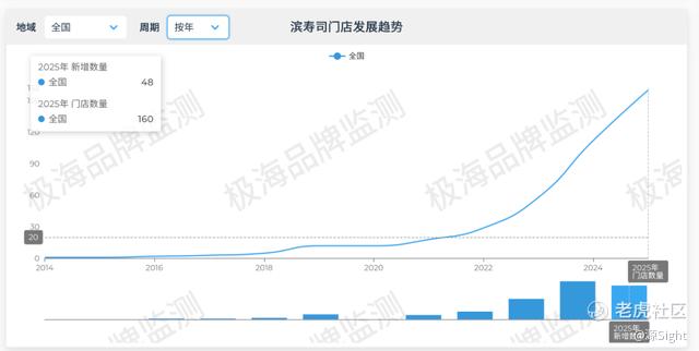 根据极海品牌监测的数据,2023-2025年,滨寿司在中国市场新增门店数量分别为29家、54家和48家。