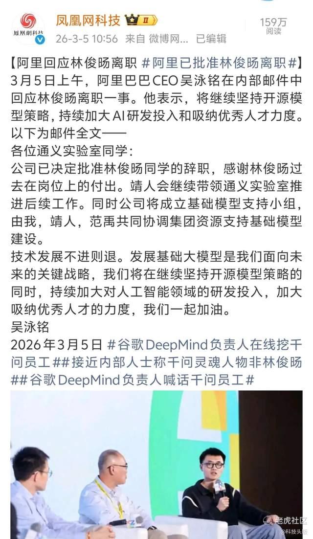 这条消息如同一块巨石投入本就波涛汹涌的湖面。直到今天,阿里官方确认了林俊旸已离职的消息。