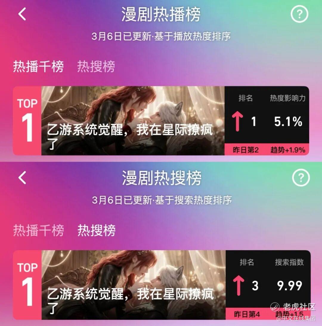 作为中文在线自制作品,《乙游系统觉醒,我在星际撩疯了》的双榜登顶,不仅展现出作品本身的内容吸引力,也体现出中文在线在AI漫剧领域已逐步形成从内容策划、题材判断到技术赋能、制作落地的体系化能力。从男频热血到女频表达,从二维到三维,中文在线正在持续拓展AI漫剧的题材边界与表现形式,推动优质内容不断跑出新样本。