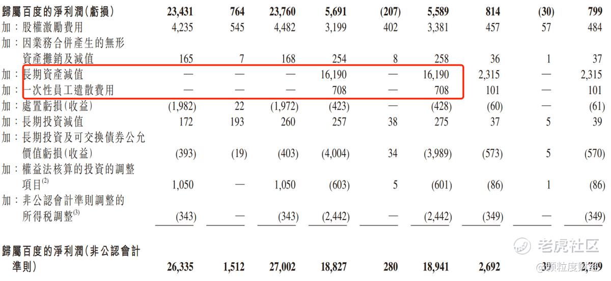 这两项直接影响了百度账面上的利润表现,长期资产减值更是直接导致经营利润由正变负。