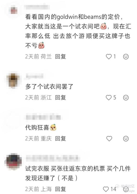 极大可能的内外高价差引起许多消费者关注。结合当前中日汇率变动,除了增加旅日购买次数的想法,也有不少消费者打起国内试衣、网上海淘的念头,准备让Nanamica武康路店像montbell国内门店一样化身“海外试衣间”。