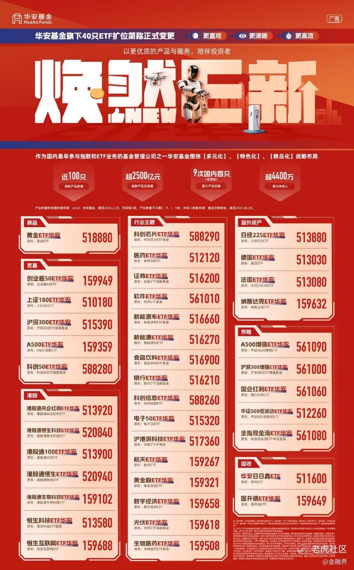而3月6日的更名,正是这一品牌战略的落地体现——不仅是黄金ETF,华安基金旗下40只ETF扩位简称正式变更,统一增加“华安”标识。以更优质的产品与服务,陪伴投资者焕然E新。