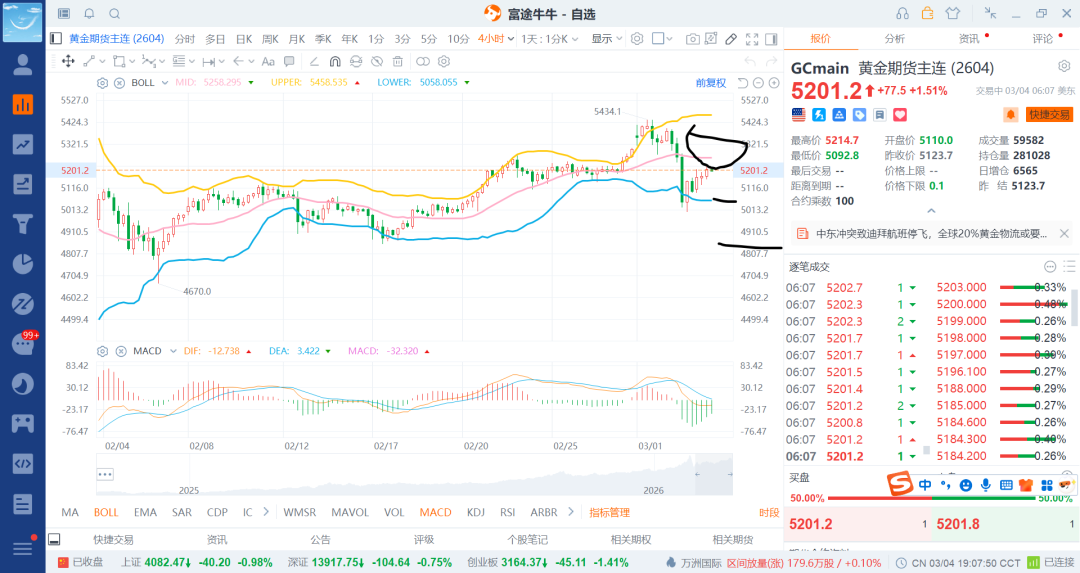 26-3-6 贵金属之黄金震荡反弹5200附近继续网格空(4)