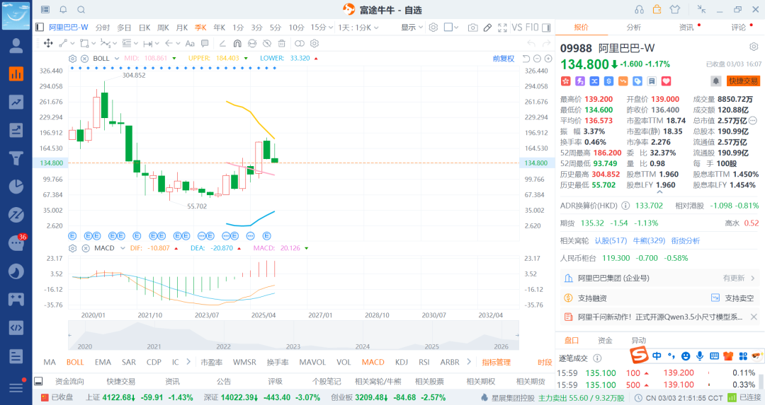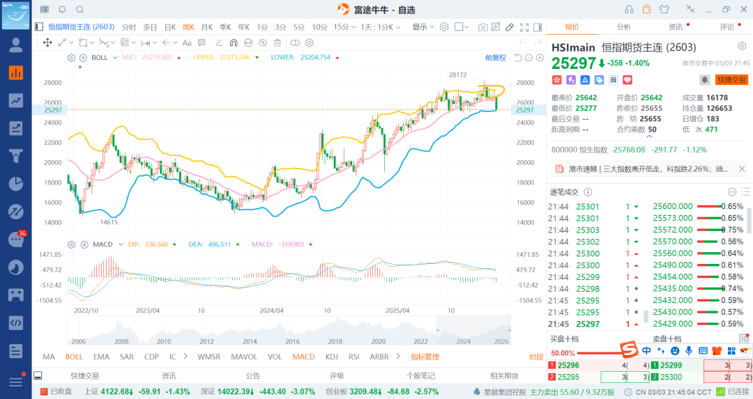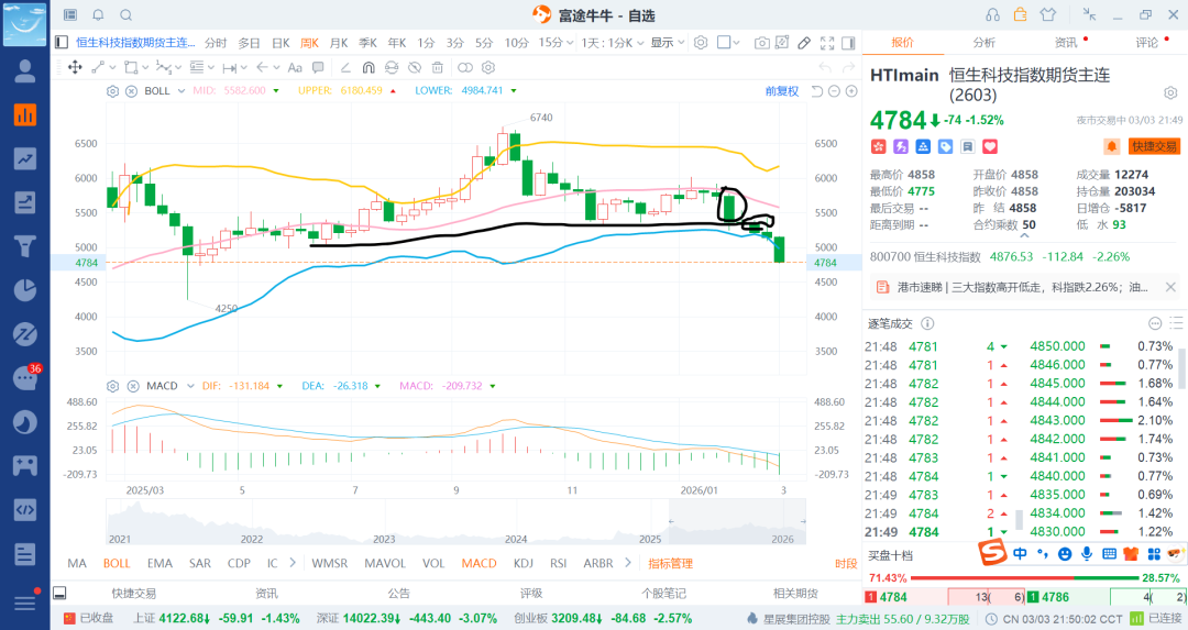 这个周线一收就知道没戏了,后边怎么个跌的问题罢了,下方好位置是2w4-2w2再说了,先跌了一段再说,叠加恒科在豆包利空其他,同时外卖大战等都侵蚀了利润,同时权重股阿里和腾讯都在高位,美团的垃圾持续跌,就么有利多折价了,叠加破位趋势走空,自然就是墙倒众人推了。