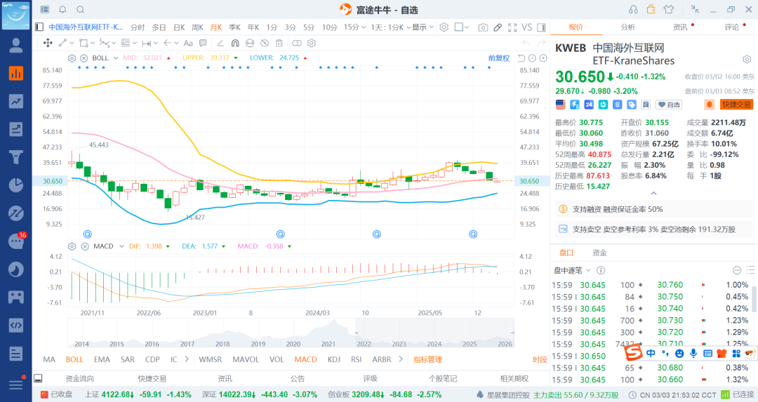 阿里也是差不多的情况了,现在反弹都不给你反弹,做差价也很难,需要控制好头寸再说了,kweb也是一样,继续寻底的过程了,下方25/20区域。