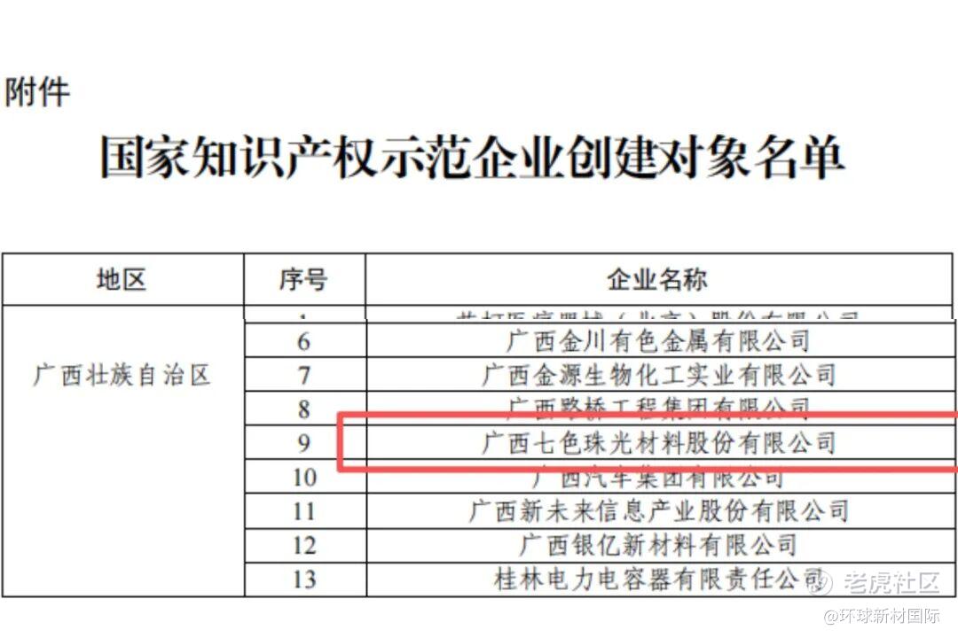 近日,国家知识产权局公布2025—2027年国家知识产权示范企业创建单位名单,环球新材国际旗下广西七色珠光材料股份有限公司成功入选。此次入选,不仅是国家知识产权局对公司知识产权创造、运用、保护和管理能力的高度认可,更是对公司深耕新材料领域、坚持创新驱动发展的肯定。