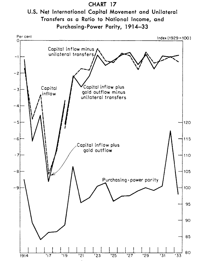 (2)相对于国民收入,资本与黄金流动的规模在战争大部分时间里,是1873年以来任何年份的两倍以上。