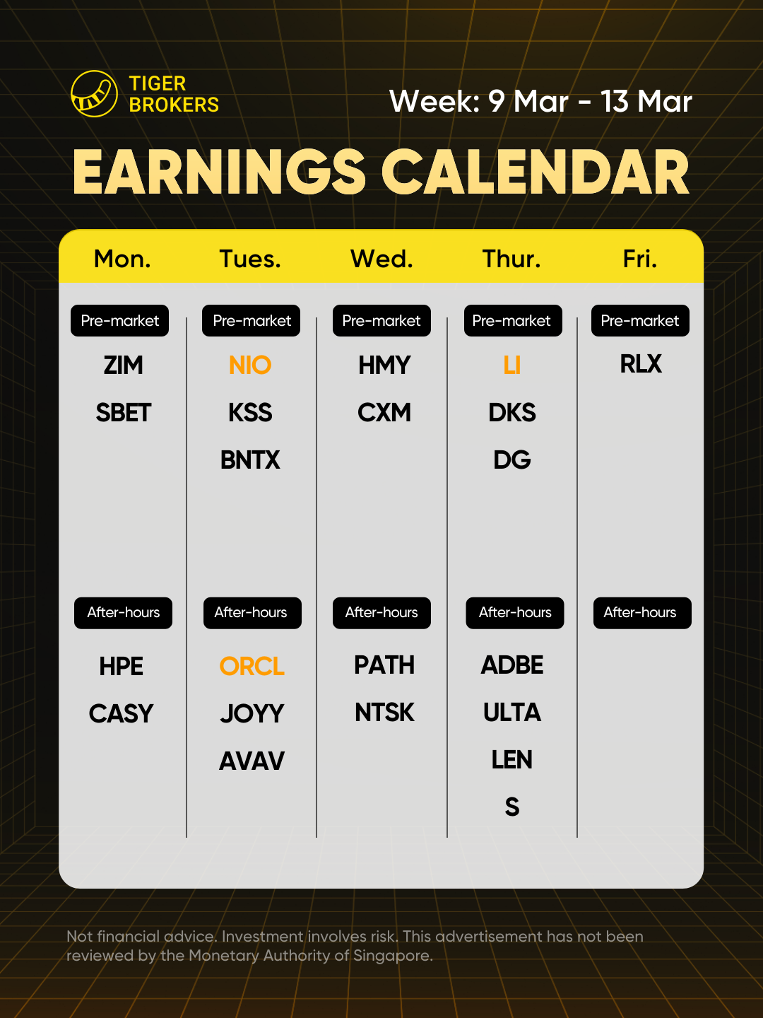 市场趋势将受到慧与、甲骨文、蔚来、理想、达乐和莱纳等主要公司财报的影响。