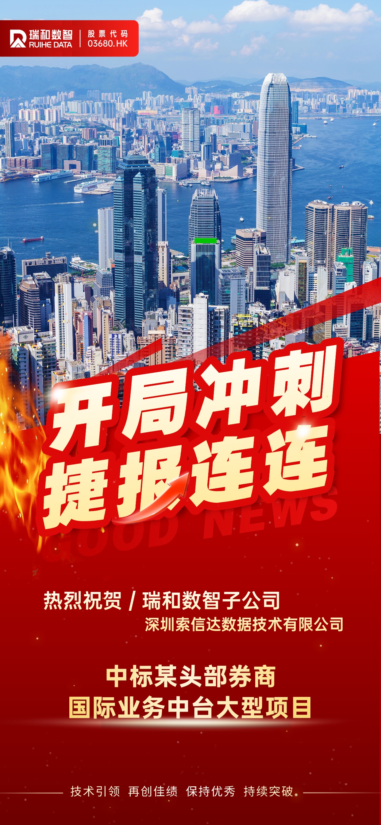 策马扬鞭, 开局争先。近日,瑞和数智(03680.HK)旗下子公司深圳索信达数据技术有限公司凭借在金融行业深厚的技术积累与卓越的交付能力,成功中标某头部券商海外业务平台“业务中台2.0项目”。此次中标不仅是瑞和数智深耕证券行业数字化转型的又一里程碑,更是市场对其专业实力与服务品质的高度认可。