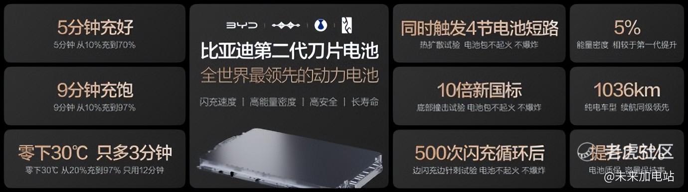 关于二代刀片电池,突然想到一些有趣的地方。 首先是,比亚迪虽然宣传的口径是“硬核闪充技术树立行业新标杆”,但“闪充技术”本质上是二代刀片电池足够强。 闪充站虽然也有技术含量,但相比起刀片来说,应该更多是产品形态上的改善。(目前我是这么认为的,如有错误请指出)。