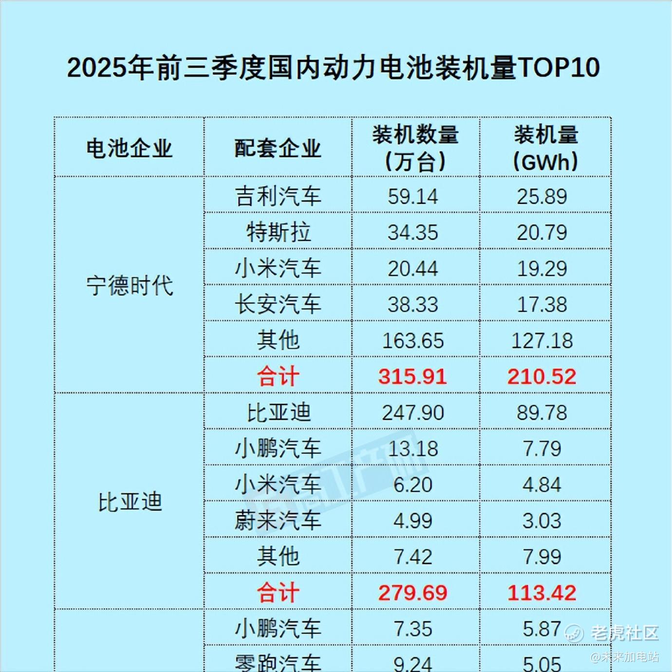 我们列个数据: 根据高工锂电数据,2025年前三季度,比亚迪国内动力电池总装机量113.42GWh,其中外供装机量达23.65GWh,主要以小鹏汽车、小米汽车以及蔚来为代表的新势力为主,外供占比提升至20.85%。这意味着,每5GWh装机量中,就有1GWh供应给外部车企,较2024年实现2倍以上增长。