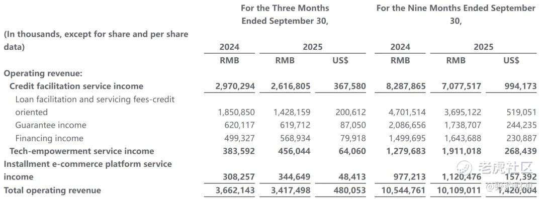 2025年三季报显示,乐信总营收的76.5%都来自信贷便利服务,助贷撮合与担保收入是公司绝对的利润支柱。在助贷新规落地前,乐信靠着低利率和高服务费的模式,能从单笔贷款中获得30%-50%的利润空间,而这种高收益又能覆盖其面向高风险客群放贷带来的坏账损失。