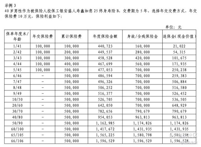 目前“鑫如意”系列产品中,工银安盛人寿鑫如意25终身寿险B仍在售,根据产品利益演示表,40岁男性投保该产品,交费期为5年,年交保险费10万元,第一年年度保险金额为44.07万元,身故/全残保险金10万元,退保金(现金价值)为2.1万元;在5年缴费期内,账户价值低于总保费50万,到第七年才回正。