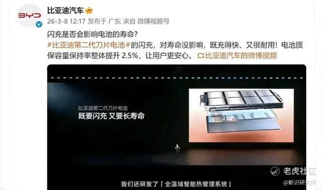 对此,比亚迪发文回应过此类问题。官方披露的测试数据显示,第二代刀片电池在完成500次闪充循环后叠加针刺测试,电池未出现热失控。比亚迪方面强调,通过“全链路离子闪通”技术体系和智能热管理系统,闪充对电池寿命“几乎没有影响”。