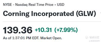被我们列为“2026 必买股”之一的 GLW,调研时价格仅 85 美元,而如今已上涨至 139.36 美元,涨幅高达 64%。