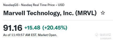 截止今天,MRVL 的股价已经上涨至 94.07美元,涨幅超 16%,这一表现验证了我们对其未来成长性和市场预期的精准判断。